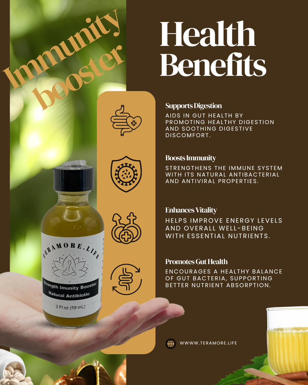 A potent formulation that aids in detoxification, minimizes, strengthens the body's natural defenses against illnesses, and fosters overall well-being.